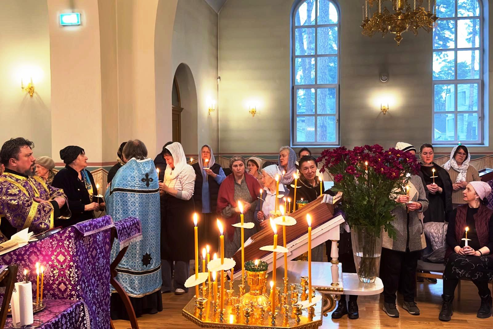 Вечером 24 марта 2026 года, во вторник 5-й седмицы Великого поста, в Дзинтарском храме в честь Казанской иконы Божией Матери было совершено таинство Елеосвящения (Соборование).